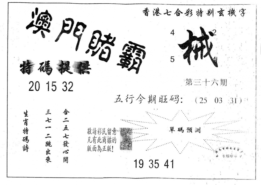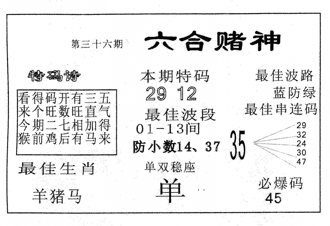 036期:【单双必中】